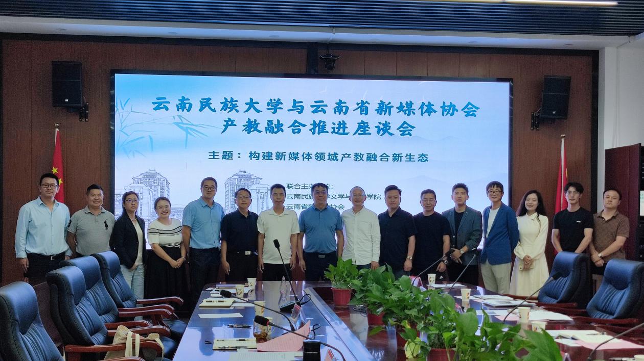 文学与传媒学院副院长陈顺尧、许丽华,学校教务处教学研究科科长张胜婷,学院新闻系主任张雯雯等与会人员围绕如何进一步深化校企合作和产教融合,完善人才培养模式,新媒体赋能云南经济社会发展、推动大学生实践实训与就业创业等内容踊跃发言。大家一致认为,云南省新媒体协会与云南民族大学联合相关高校、企业启动“产教融合共同体”创建工作,并同步推动成立“高校专委会”,建设开放型公共实践实训基地,不仅满足社会对创新型高质量人才的需求,对推进高校教学改革、提升技术技能人才培养质量,促进全省新媒体领域的教育与产业协同发展也具有重要意义。